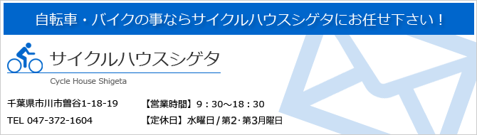 サイクルハウスシゲタでは、パンク修理からブレーキ修理、鍵の交換やカゴなどの付属品の販売等、地域の皆様のサイクルライフをサポートしております。お持ちの自転車の事でお困りごとがございましたらお気軽にご相談ください。
